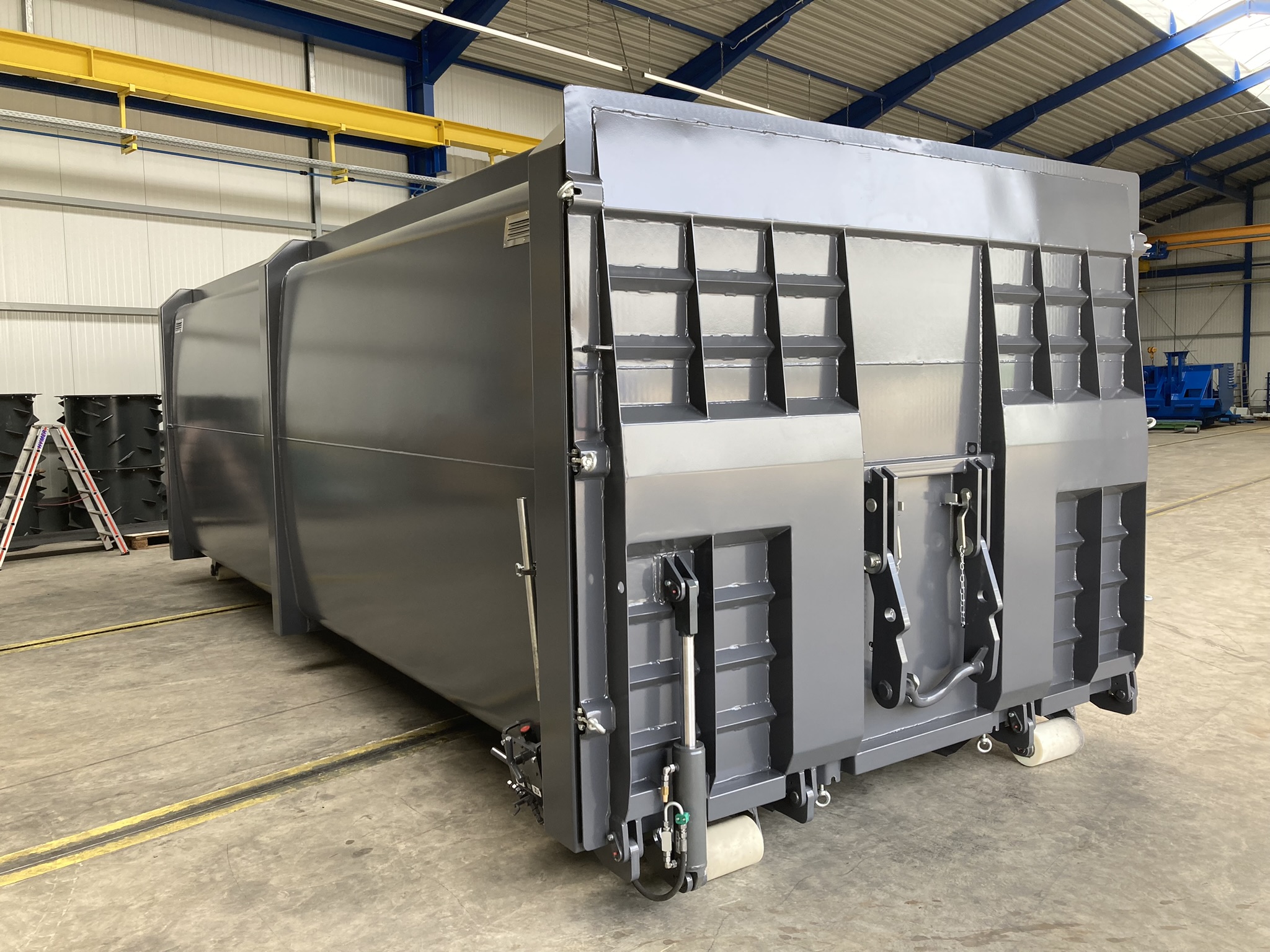Die eCar-Safetybox ist für verschiedenste Anwendungszwecke konzipiert. Sie ist nicht nur ein sicherer Ort für Hochvolt-Fahrzeuge und -Batterien, sondern auch eine effiziente Lösung für Quarantäneflächen. Dank ihrer flüssigkeitsdichten, hydraulikbetriebenen und überfahrbaren Heckrampe mit B-Storz-Anschlüssen für die Feuerwehr, bietet sie maximale Sicherheit im Brandfall.